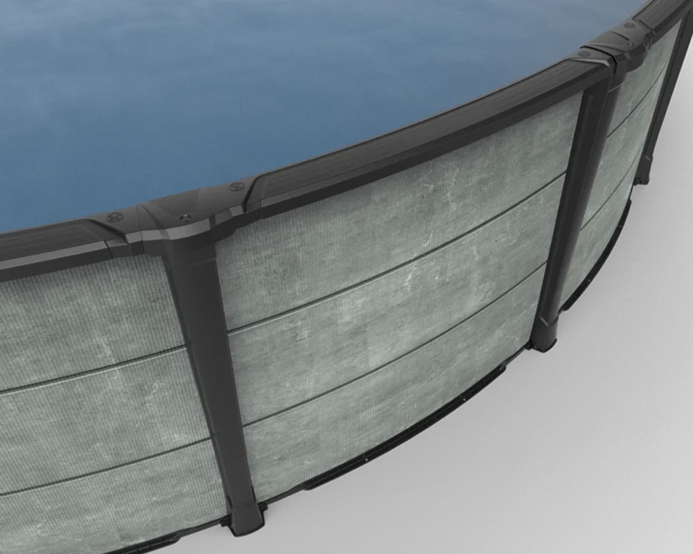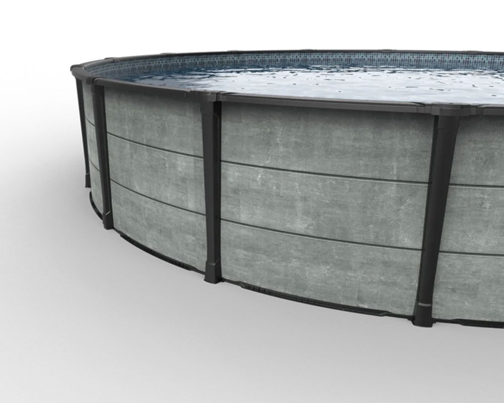 The Newtown pool is universal and elegant. The concrete effect of its wall and its black frame elements offer a robust and trendy appearance. An affordable way to create architectural balance in your outdoor space and make your summers shine.
